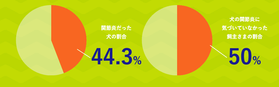 関節に問題があることがわかりました。またそのうちの飼主さまの半分が 犬の関節炎(変形性関節症)に気づいていなかったことがわかりました。