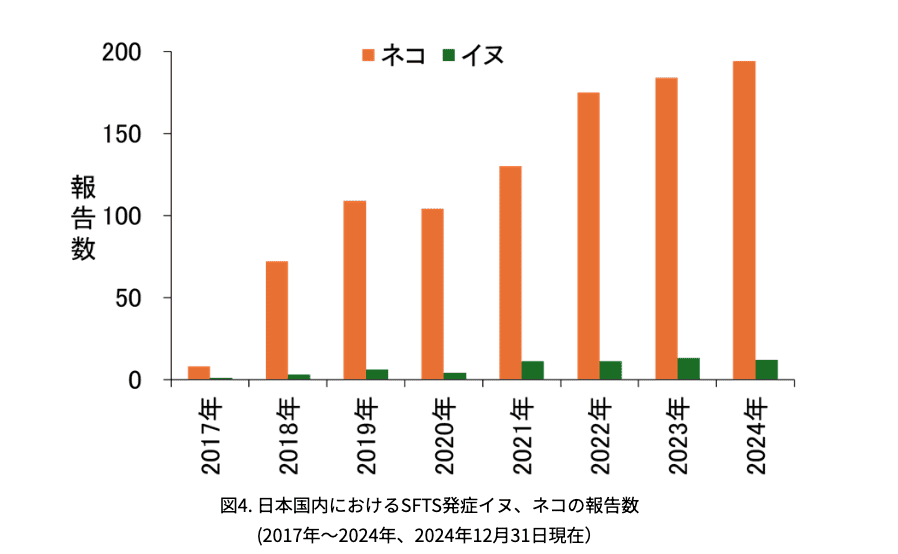 グラフの通り、犬・猫ともにSFTSの発生報告数は年々増加しています。